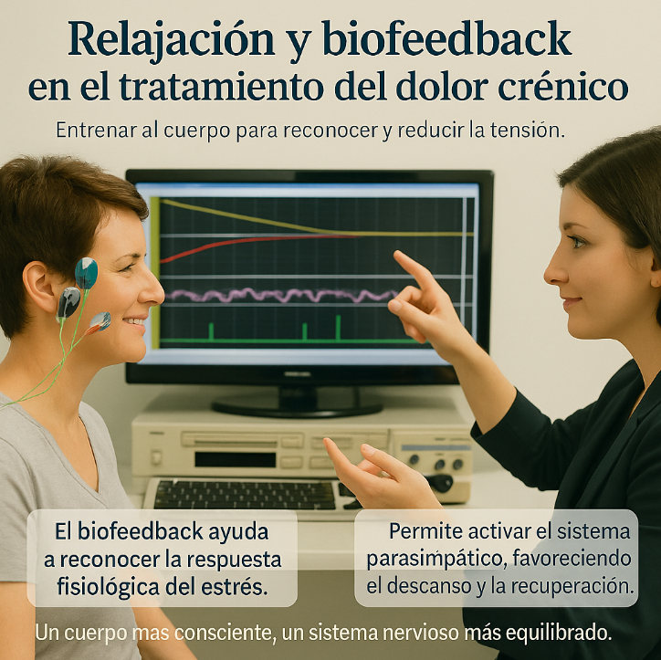 En muchos programas terapéuticos, esta relajación se combina con biofeedback, una herramienta que entrena al paciente a reconocer y controlar parámetros corporales (frecuencia cardíaca, respiración o tensión muscular) mediante retroalimentación visual o auditiva.