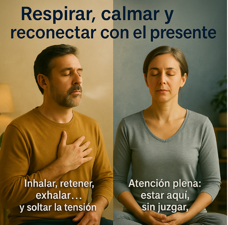 También puede utilizarse la pausa consciente: cerrar los ojos, sentir el cuerpo y observar los sonidos o sensaciones sin reaccionar ante ellos. Estos pequeños momentos de atención plena devuelven serenidad, disminuyen la activación del sistema nervioso y favorecen el descanso mental.